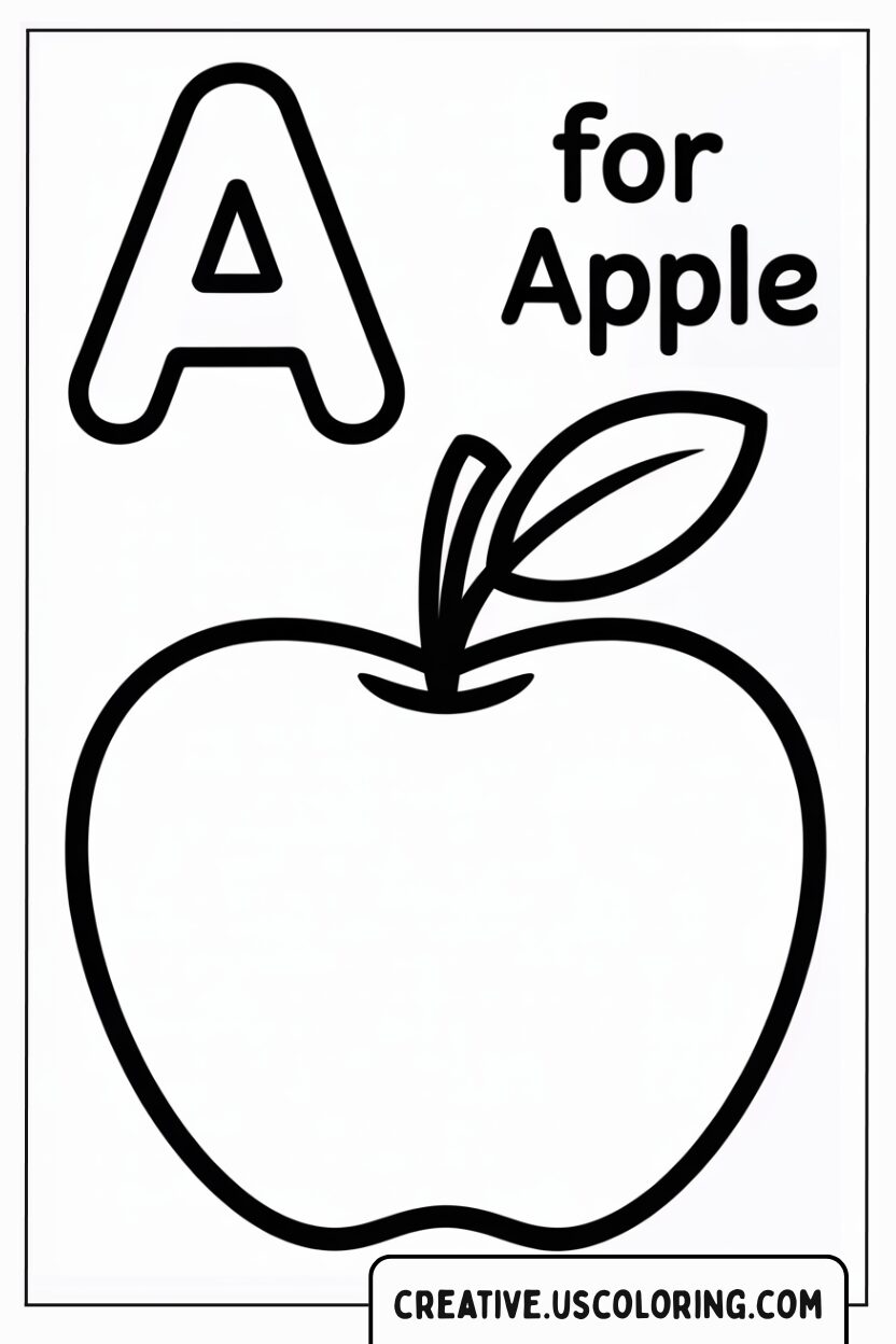 Why is this specific coloring page an essential tool for early learners? Because it masterfully combines visual learning with kinesthetic activity. The letter ‘A’ is the gateway to the alphabet, and the ‘Apple’ is the perfect, simple object to anchor that knowledge. When a child colors this page, they aren’t just engaging in a relaxing activity; they are simultaneously reinforcing a fundamental lesson. Their brain links the bold shape of the letter ‘A’ with the familiar shape of the fruit whose name starts with that letter. This powerful association—seeing the letter, saying the word “Apple,” and physically coloring the object—creates a strong, memorable cognitive link. It’s a joyful way to build vocabulary and literacy skills, making the sometimes challenging process of learning the alphabet feel like play.