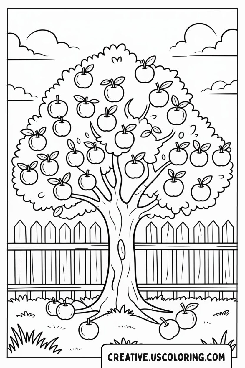 | Title | apple-tree-with-apples-and-fence-coloring-page |