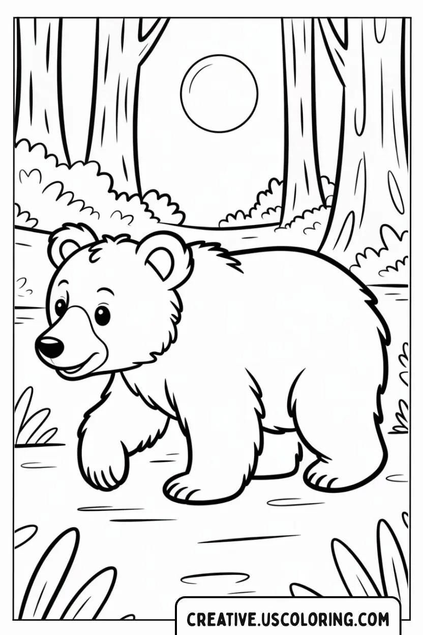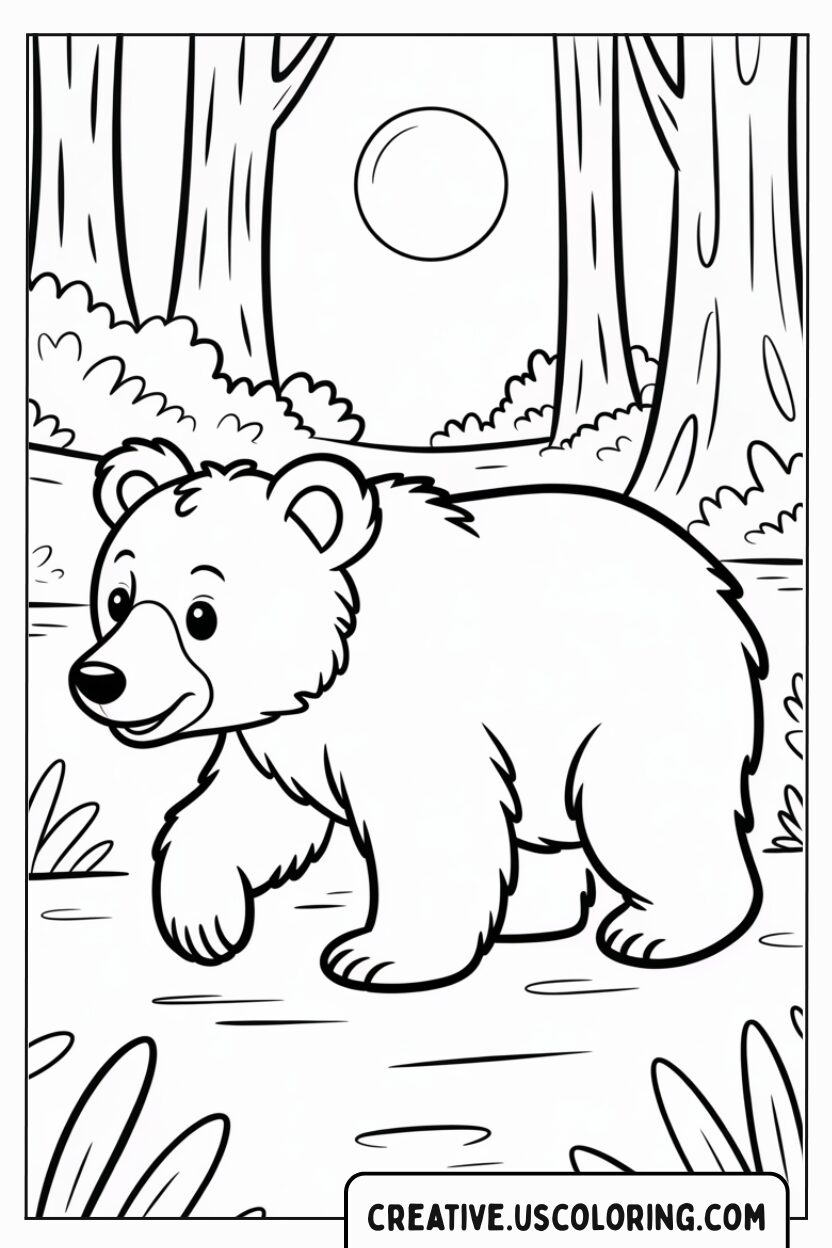 cute-bear-walking-in-forest-coloring-page