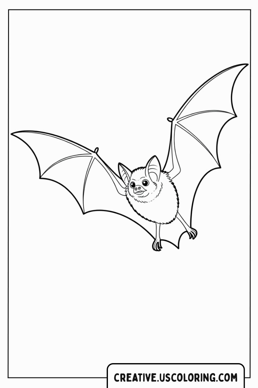 This charming bat outline coloring page captures the beauty of a bat in flight — wings wide open, gliding gracefully through the night sky. With its soft fur and bright eyes, this friendly bat isn’t spooky at all; instead, it feels curious and full of life. Bats are incredible animals that play an important role in nature, helping pollinate plants and control insects. This coloring page invites you to see bats not just as Halloween creatures, but as fascinating beings that make the night come alive. Whether you imagine it flying under a full moon, above a quiet forest, or across a starry sky, this design gives you plenty of room for imagination and creativity. It’s ideal for children who love animals, students learning about nocturnal wildlife, and anyone who enjoys peaceful, detailed coloring.