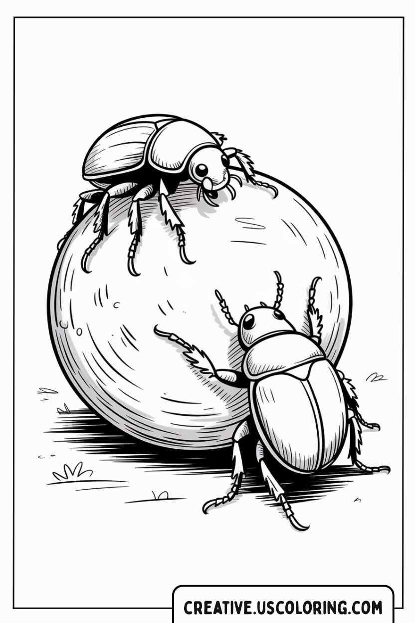 Title two-beetles-climbing-a-round-ball-on-the-ground-coloring-page