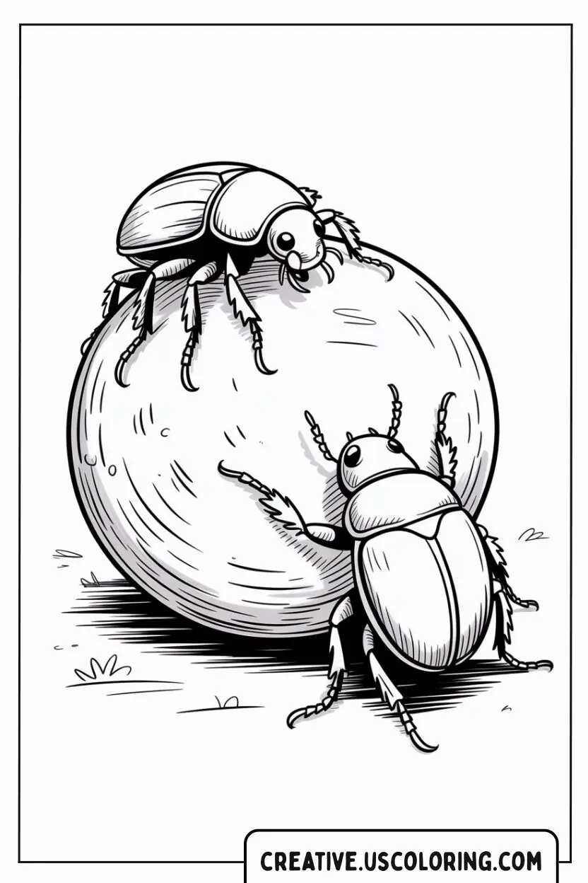 two-beetles-climbing-a-round-ball-on-the-ground-coloring-page