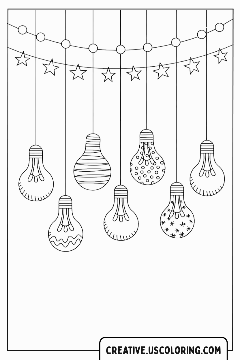 This coloring page is perfect for kids, teens, and adults who love creative, minimalist designs. Whether you want to create a cozy Christmas art project, decorate your home with your finished masterpiece, or simply relax with some coloring therapy, these glowing light bulbs will inspire endless creativity.