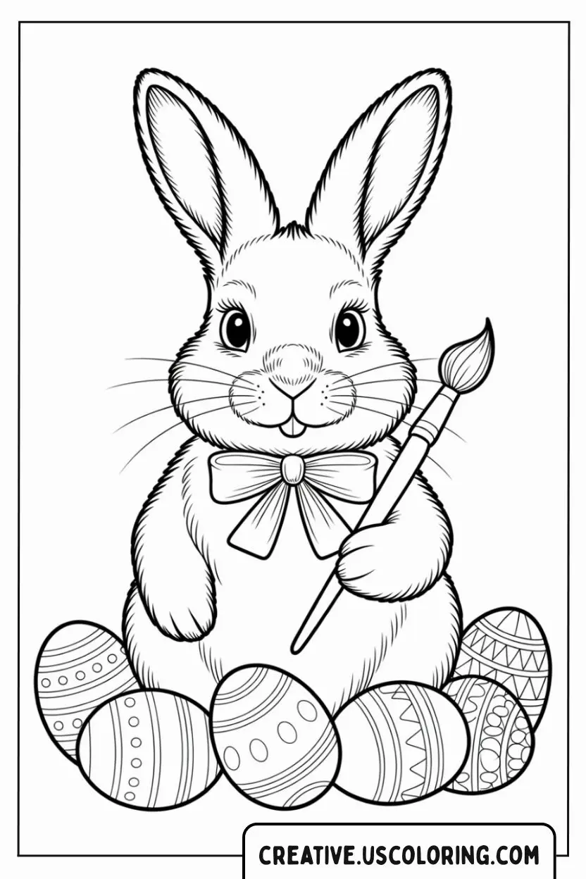 | Title | cute-bunny-holding-a-paintbrush-sitting-among-decorated-easter-eggs-coloring-page |
