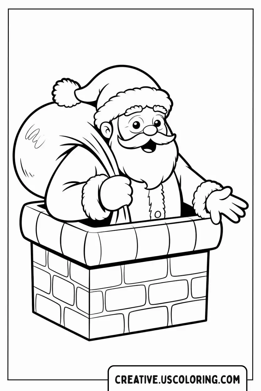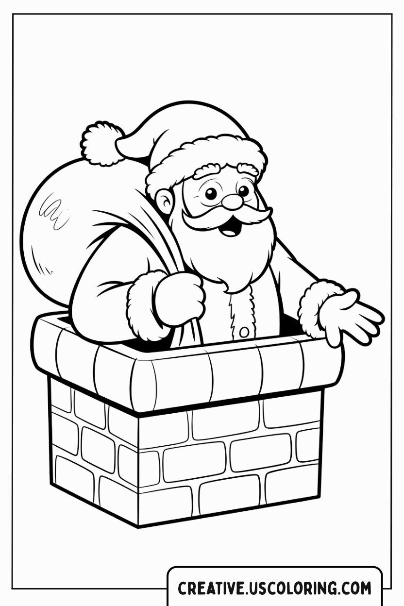 This exciting coloring page captures the quintessential moment of Christmas magic: Santa Claus carefully emerging from a brick chimney, his giant sack of gifts slung over his shoulder. This image perfectly embodies the mystery, adventure, and wonder of Christmas Eve night. Why color this iconic scene? It instantly sparks the imagination, evoking feelings of hushed excitement and the quiet, magical hustle of Santa’s secret mission. As you bring color to the rough brickwork, the soft white fur of his suit, and the overflowing gift sack, you are celebrating the tradition of surprise and the spirit of generosity. Let this page be a cheerful tribute to the hidden magic that happens while the world sleeps.