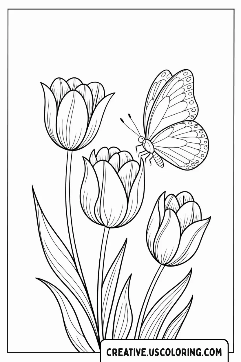 | Title | Tulips-and-Butterfly-Spring-Flower-Coloring-Page |