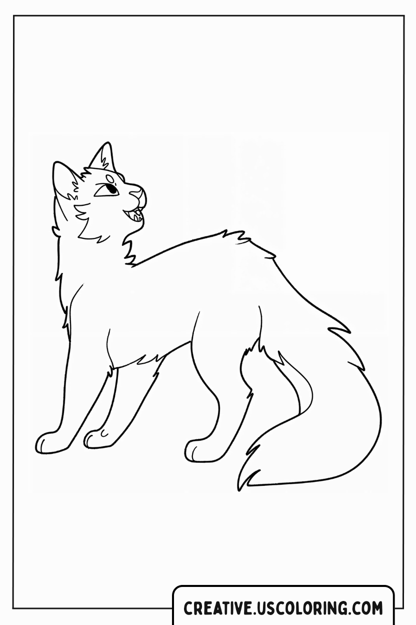Imagine the whispering wind through the forest and the sharp scent of a wild creature! This dynamic warrior cat coloring page features a proud, strong feline from the legendary Clans. With its thick, textured fur, alert posture, and fierce expression showing a hint of its teeth, this cat embodies the courage, loyalty, and wild spirit of a true Clan warrior. This image brings a sense of adventure, strength, and untamed nature to the page. It’s an open invitation to fill this mighty feline with the natural, earthy colors of the wilderness.